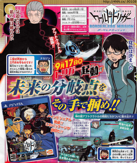 This year's 32nd issue of Shueisha's Weekly Shonen Jump magazine is revealing on Monday that Bandai Namco Entertainment will release the World Trigger: Borderless Mission PS Vita game on September 17. The game will retail for 5,690 yen (about US$46).