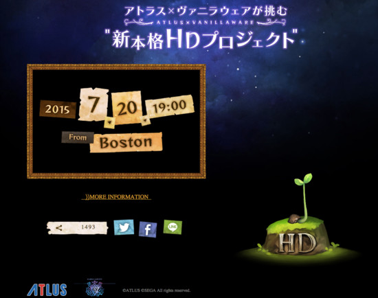 Video game developers Atlus (Shin Megami Tensei, Persona, Etrian Odyssey franchises) and Vanillaware (Odin Sphere, Muramasa, Dragon's Crown) have launched a teaser site for a "new method HD project." The site lists the time of 7:00 p.m. on July 20 and the text "From Boston."