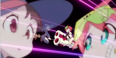 An announcement video for Studio Trigger's upcoming Little Witch Academia aired after the final episode of Space Patrol Luluco on Friday. The end of Space Patrol Luluco features its protagonist "tagging in" the Little Witch Academia protagonist Akko. It is followed by video clips from the first two Little Witch Academia installments.