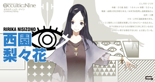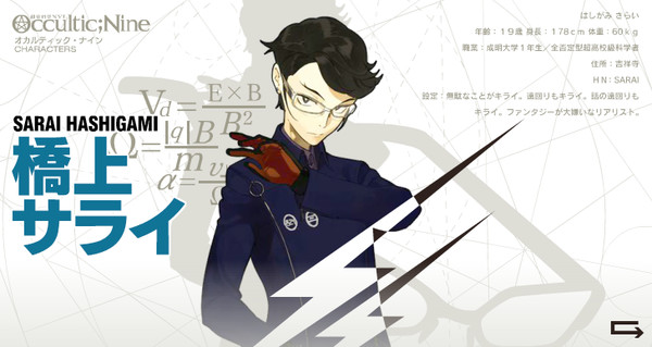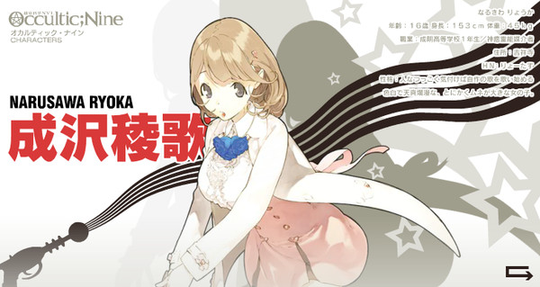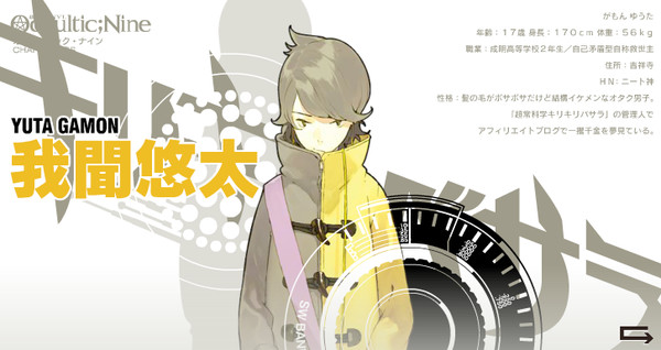 While Shikura created Occultic;Nine, he emphasized in 2012 that it is not the fourth science-adventure title from 5pb. He did note that the novel can be considered the fourth Chiyomaru Shikura title after Chaos;HEAd, Steins;Gate, and Robotics;Notes. (Shikura eventually announced the fourth science-adventure title, CHAOS;CHILD, in 2013.)