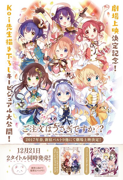 The official Twitter account of Houbunsha's Manga Time Kirara magazine revealed a new visual on Sunday for the Is the order a rabbit?? television anime's new special anime episode that will screen in theaters in Japan in spring 2017. Koi, the original manga's creator, drew the visual.