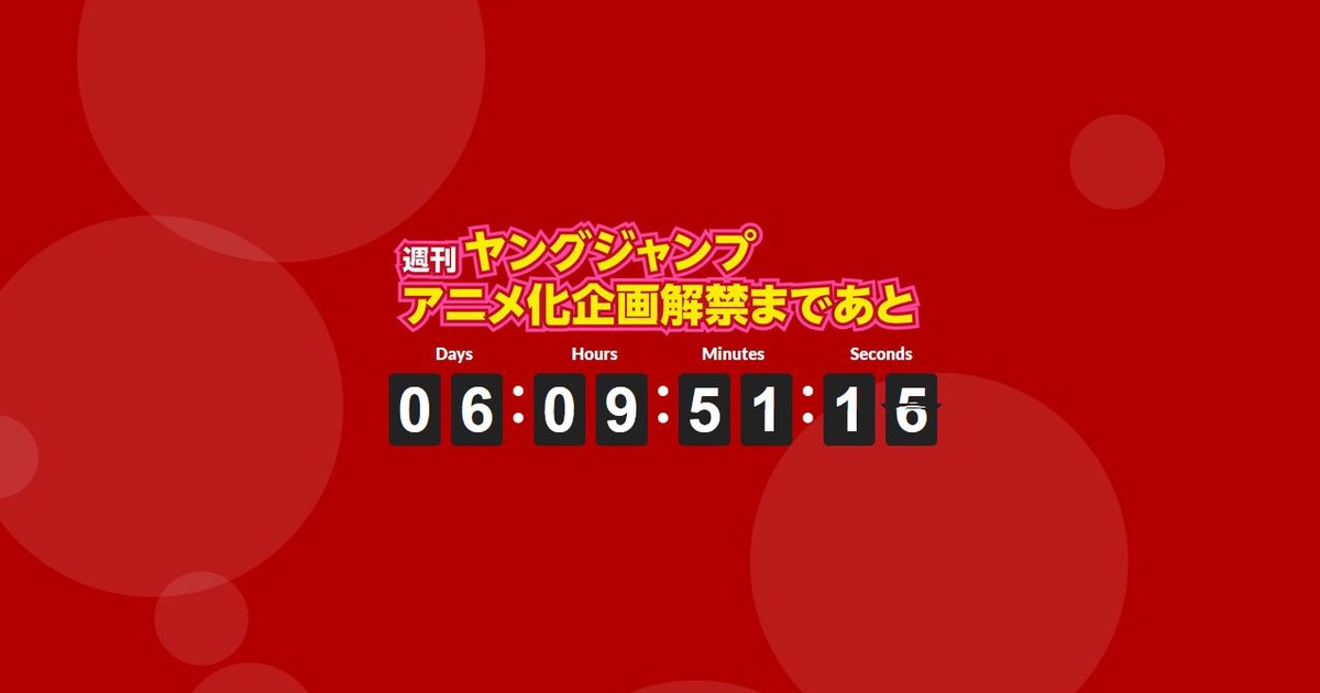 Shueisha opened a countdown website on Thursday at the "http://kda-anime.com/" URL. The site teases a new anime project by Shueisha's Weekly Young Jump magazine. The countdown will end on February 2 at 12:00 a.m. JST (February 1 at 10:00 a.m. EST). Pony Canyon is also listed on the website.