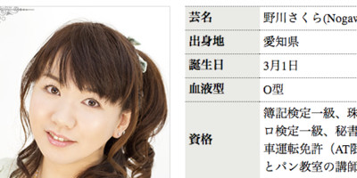 Voice actress Sakura Nogawa announced on Wednesday that she has changed agencies to Office Anemone. She was previously affiliated with RAMS.