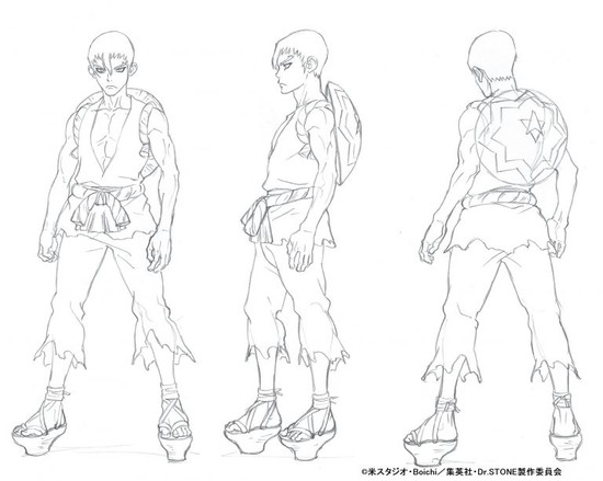 This year's 25th issue of Shueisha's Weekly Shonen Jump magazine revealed four more character designs on Monday for the television anime adaptation of Riichirou Inagaki and Boichi's Dr. Stone manga. The magazine previously revealed the cast for the characters in March.