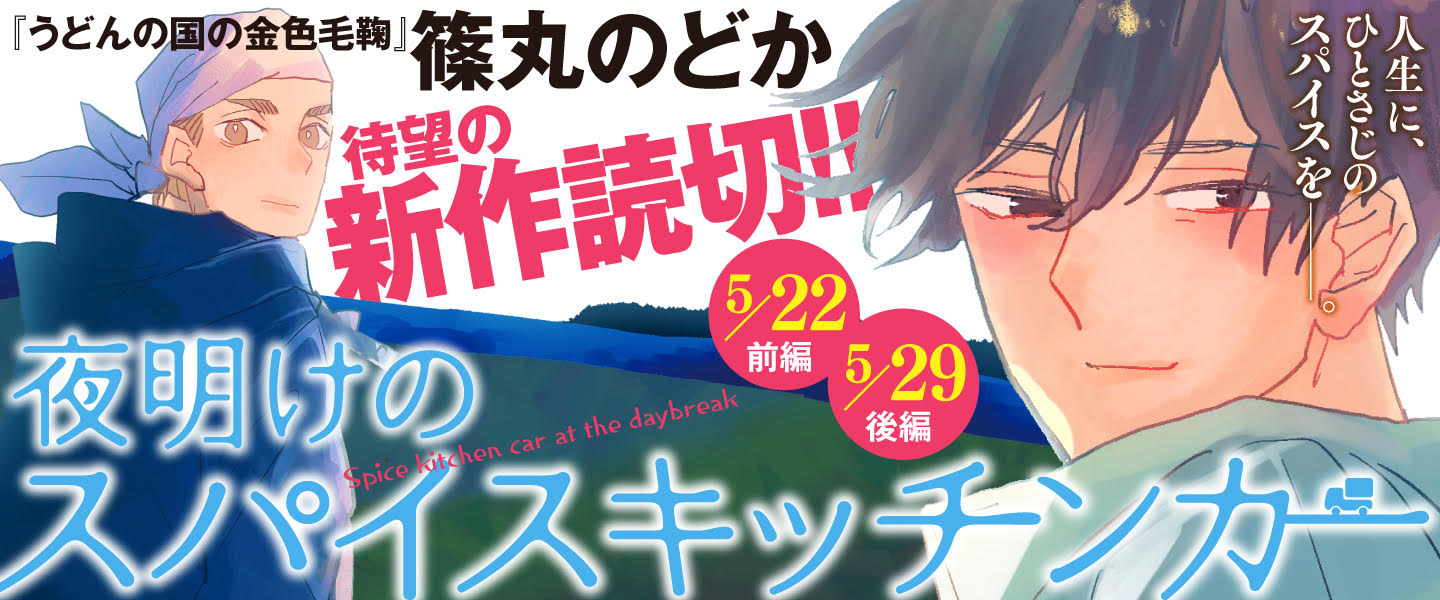 Shinchosha's Kurage Bunch website is listing that it will publish a new two-chapter manga by Nodoka Shinomaru on the website on May 22 and May 29. The manga is titled "Spice kitchen car at the daybreak" ("Yoake no Spice Kitchen Car").