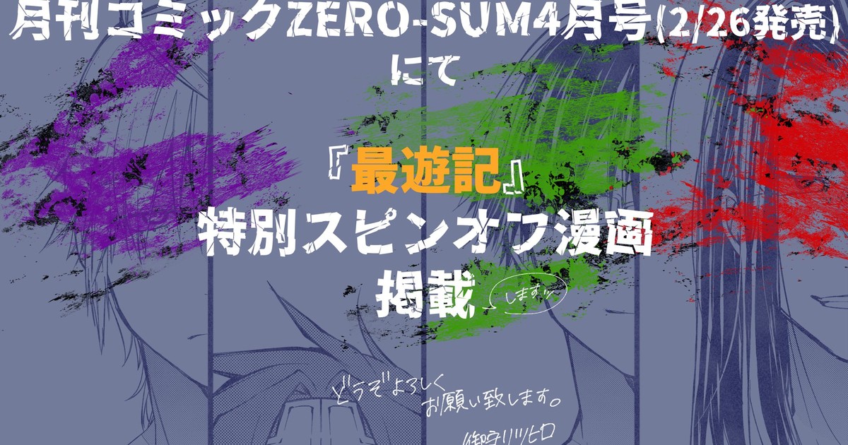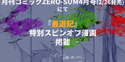 本日発売の3月号でも告知頂きましたが、来月2/26(金)発売の月刊コミックZERO-SUM4月号にて、僭越ながら峰倉かずや先生原作の『最遊記』のスピンオフ漫画(読切)を掲載して頂きます。