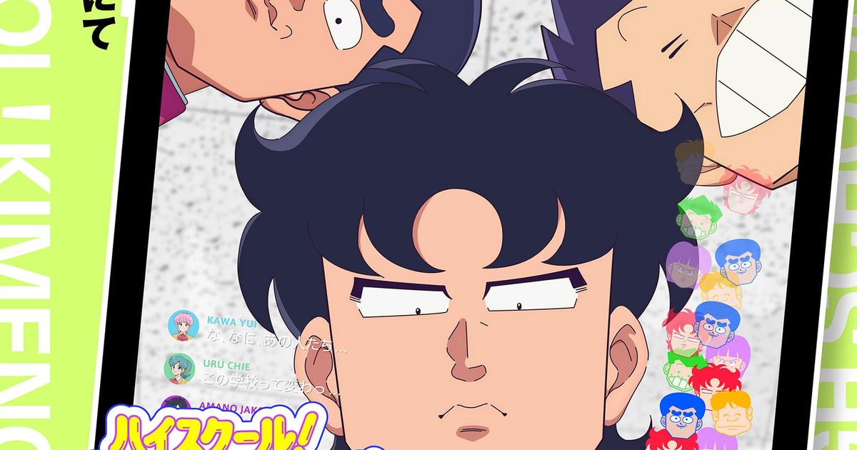 The gag comedy centers on a group of five idiosyncratic, wacky students, known in the school halls as Kimengumi, who all befriend the cutest girl in school and her best friend. Whereas the original manga (and its first television anime) were set in the 1980s, this new anime will set the story in the modern Reiwa era with a new cast.