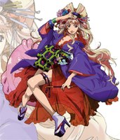 In the above photo, an unidentified cosplayer portrays singer Sheryl Nome from the television anime series Macross Frontier. In the series, Sheryl is an idol famous throughout the galaxy for her singing abilities, known as the "Galactic Fairy." The outfit portrayed here comes from an illustration in the Macross F Visual Collection - Sheryl Nome Final art book. It has also been made into a figure by Banpresto.