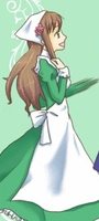 In the above photo, an unidentified cosplayer portrays Hungary from the television anime Hetalia - Axis Powers. In the series, Hungary starts out as a nomadic girl, but eventually settles down and marries Austria, although their marriage crumbles shortly after World War I. Her weapon of choice is a cast-iron frying pan, which she uses often against Prussia.