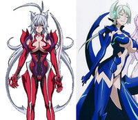 In the above photo, two unidentified cosplayers portray Amaha Masane and Tsuzuki Shiori from the television anime Witchblade. In the series, Masane and Shiori clash in battle when the latter reveals her identity as a Cloneblade. Masane is shown here in her final Witchblade form, once her powers consume her body.