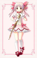 In the above photo, an unidentified cosplayer portrays Kaname Madoka from the television anime Puella Magi Madoka Magica. The title character of the series, Madoka is offered the chance to become a magical girl and having a wish granted in the process. However, she quickly learns that being a magical girl has tragic downsides, and starts to question accepting the role.