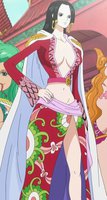 In the above photo, an unidentified cosplayer portrays Boa Hancock from the television anime One Piece. In the series, Boa is the leader of the all-female Kuja tribe and the ruler of the Amazon Lily empire. She's also the only female member of the Seven Warlords of the Sea. Her beauty is legendary, which is lucky for Luffy, whom she eventually falls in love with for his selflessness.