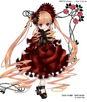 In the above photo, an unidentified cosplayer portrays Shinku from the television anime Rozen Maiden. Shinku is the fifth doll, but the first to appear in the series. She fights in the Alice Game with her medium, Jun.