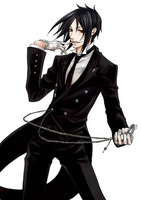 In the above photo, cosplayer Ellyz portrays Sebastian Michaelis from the manga and TV anime series, Black Butler. Sebastian is the butler of the Phantomhive household, as well as the bodyguard for the master of the house, Ciel. He is highly skilled in running and maintaining everyday household affairs, and he's a proficient fighter, often using objects like knives and plates as weapons. His catchphrase is, "I am one hell of a butler."