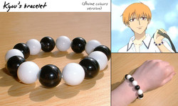 Also when you're planning, make sure you know what size your accessory will be. Anime accessories are usually a bit bigger in scale than they would be in real life. For example, Kyo's bead bracelet from Fruits Basket looks perfectly normal on his bony anime-thin wrist, but if you actually count the number of beads and measure your human-sized wrist, you'll realize that they're bigger, chunkier beads than you'd normally wear on a bracelet. It makes a surprising amount of difference if you get the scale right – it makes the bracelet look like Kyo's, rather than just something you found and decided to use. If in doubt, make yourself a paper template and hold it up, using your own body as a measure – you want the accessory to look the same size on you as it does on the character you're cosplaying.