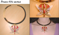 Obviously, finding references is easier with some anime than others. The makers of Utena, for example, put concept sketches of the duelist's ring in one of their artbooks, so a little time spent searching fan sites got me everything I needed - but when I wanted to make Juri's locket from the same series, I was reduced to watching my DVDs in slow motion to find exactly the close-up I needed. Sometimes you need a bit of imagination - the important thing is not that you have every single detail exactly as the animators intended, but that you know exactly how *you* want it to look before you start.