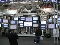 As far as the booths go, I still think the "most impressive" booth award goes to Fuji TV, seen in the pictures to the left. According to Fuji TV representative Noriko Ozaki, the network had their own design team come up with the setup, which involves over 20 screens and specially programmed sequences that give the whole thing a kind of "game show on acid" feeling.