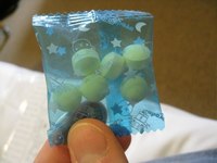 The ramune candy that is mercifully tossed into the box with this toy is, as one might expect, nothing special - just some ramune-flavored stuff with no real redeeming trait other than the fact that it's sugar. Still, that's not a bad thing - someone could use the sugar high that this relaxed bear is clealy denying himself.