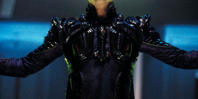 Most of my costumes are in the truck, but I can show you Piccolo. This is the most important guy, in terms of wanting more power. He has every resource in the world, minerals and gold and wealth, and he wants more. What he wants most of all, are the Dragonballs. And he wants them now. So we wanted to give him a regal look. You know, rich fabrics and an elegant look, but also keeping the interesting elements from the anime. In the anime, he had ripped arms. We try to give it more style, but we kept his face green. From the anime, he's actually very simple. You know, he actually just wears some kind of white tunic with a white turban. That is not very interesting. We weren't going to do that for the movie. I don't think he was going to work out in terms of visuals, you know. You want to show something. This one is nice. It has texture.