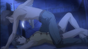 07-Ghost is the latest of these, based upon an archetypal magical boy manga with homoerotic overtones by Yuki Amemiya and Yukino Ichihara. The first episode starts with Teito Klein and his military academy's final exam—of which only a few will survive. Fortunately, he and his best friend Mikage are among the most gifted students, and it seems that they will have a bright future serving their country. But then Teito encounters a powerful but sinister man named Ayanami. Memories of Ayanami killing his father surface, and Teito's life takes an unexpected path…