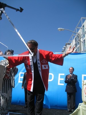 Tokiwa then presented Mirkarimi with a traditional happi coat with images and text from the 20th Century Boys film, which he donned to cheers and applause from the audience. The host returned to announce that he got word of a "huge surprise," which was brought to the stage by San Francisco Asian Community Liasion Francis Tsang and Seiji Horibuchi himself. The surprise turned out to be a proclaimation from San Francisco mayor Gavin Newsom naming August 15th, 2009 as "J-Pop Center Day" in the city of San Francisco.