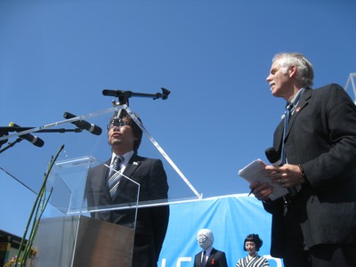 Next to the stage was Ross Mirkarimi, the San Francisco City Supervisor who represents the district that includes Japantown. "I couldn't be more proud of Japantown and San Francisco today... for the inaguration of the New People center here in Japantown," said Mirkarimi, whose politically-flavored speech alluded to some of the development-related hurdles that new projects in the city face. "Land use is not an easy plight in any big city, including San Francisco. But when you think about the economic times that our nation has been experiencing... this defies the trend of what is occurring, when this project has prevailed where many others have stalled." He went on to call New People a unification of the future and the past, alluding to the historical qualities of Japantown compared to the "new" culture that New People represents.