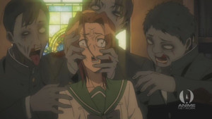 Mm-hm. It's what it sounds like, cicadas crying and all. But those familiar with the hyper-moe gorefest Shiki hearkens to know this isn't a bad thing. Other elements like wraithlike wolves sucking the lives from villagers and leaving their bodies to rot recall more mellow horror anime of the past year, and its this balance that makes Shiki incredibly intriguing so far.