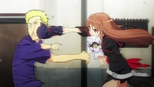 Any claim that Ryoko's design is not heavily influenced by the heroine of Toradora! is hard to substantiate, as she is distinctly taller than Taiga but otherwise has the same build, same facial structure, and the same demeanor and attitude. She does have a more mature and appealing style of dress, though. JC Staff's artistic effort here is not one of their sharper or cleaner ones, though the animation in the action scenes is both good and surprisingly well-detailed.