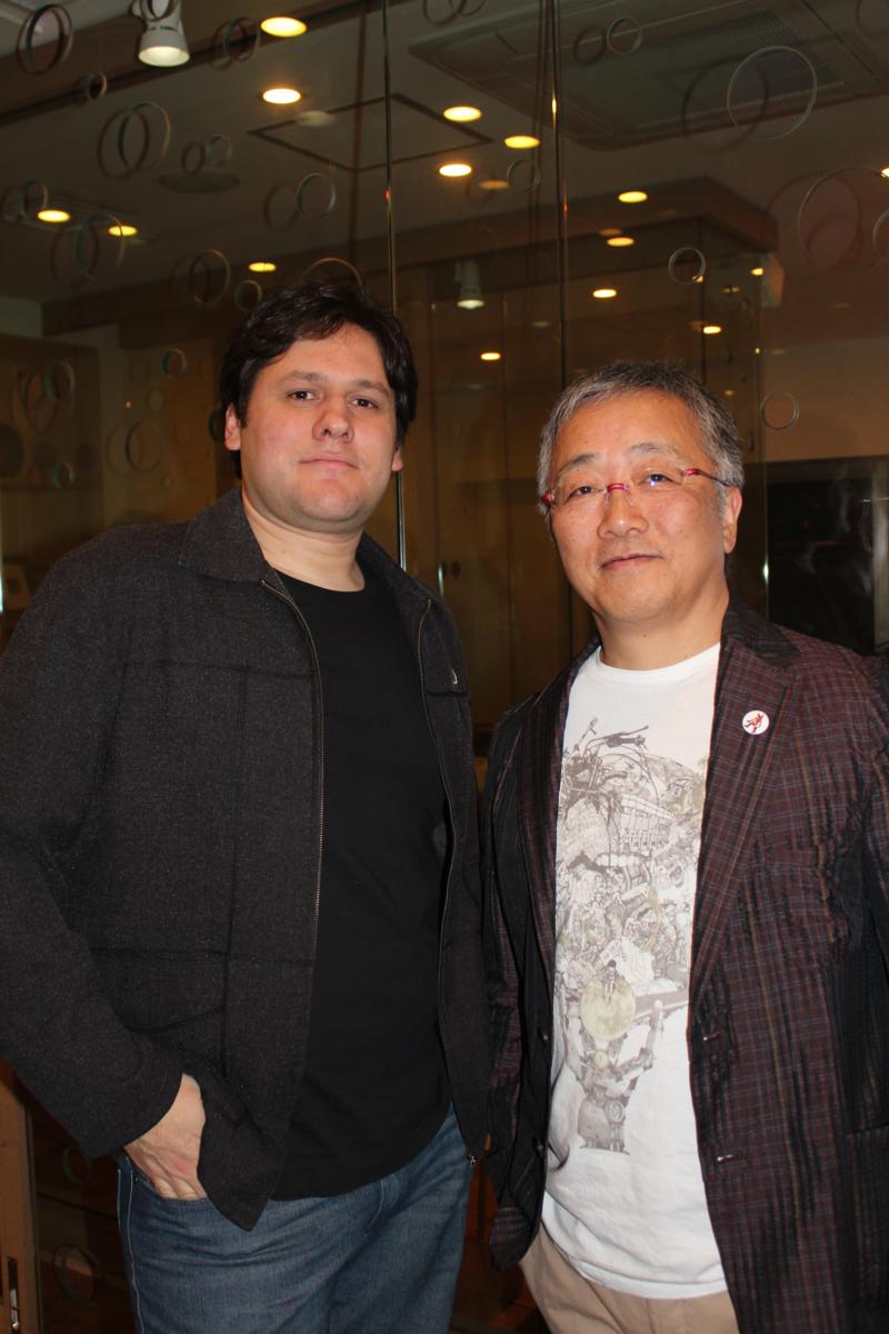 Many fellow manga and anime creators joined Otomo at preview night, including Takehiko Inoue (Vagabond, Slam Dunk), Kōji Morimoto (Memories' "Magnetic Rose," The Animatrix's "Beyond," Genius Party's "Dimension Bomb") and Naoki Urasawa (Yawara!, 20th Century Boys, Monster). Throughout preview night, the artists filled one blank wall with tribute sketches to Otomo, and Otomo drew a few sketches himself.