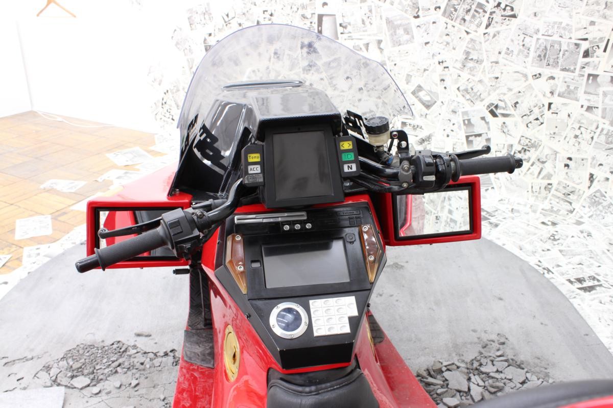 The exhibition ends with a full-size replica of Kaneda's iconic motorcycle from the Akira manga and anime. Visitors are allowed to — in fact, encouraged to — put on a red leather jacket provided at the exhibition, sit on the motorcycle's low-slung seat, and relive childhood fantasies. A collection box stands near the motorcycle, silently nudging visitors to donate to a fund to fight autism.