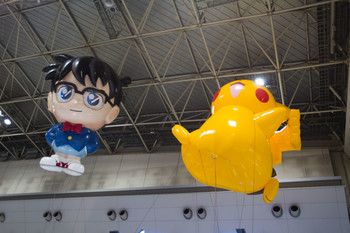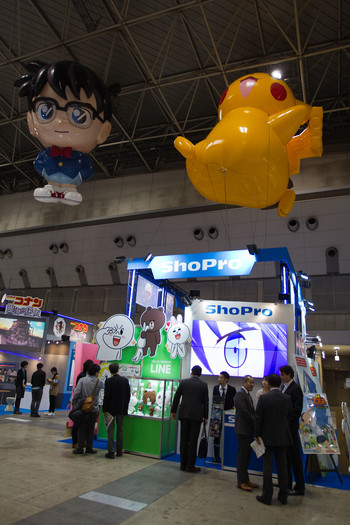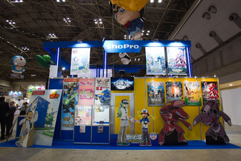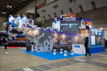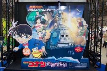 Exhibiting next to Sho-Pro, under a towering inflatable Detective Conan and Pikachu, TOHO goes all out to promote Conan's new animated movie Private Eye in the Distant Sea, hitting the theaters on April 20th–with a huge ship-shaped booth and real-size cut-outs of the main cast. They even sell presale movie tickets on the spot. Even on business days, TAF has started to look more like a shopping mall than a trade fair.