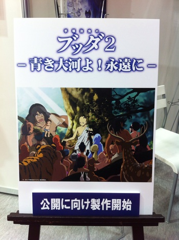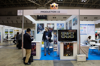 Just like the previous year, animation studio Production I.G has a very small presence, and only on business days; the booth has posters and leaflets–in English only–about new and old works, from the film Cyborg 009 3D (2012) to Ghost in the Shell 2: Innocence (2004) passing by Musashi (2009) written by Oshii and a big TV screen showing the production reel. This year they also handed out a leaflet about Anime Mirai's four projects: Juju, Shiranpuri (Pretending Not to See), Wasurenagumo (Li'l Spider Girl) and BUTA.