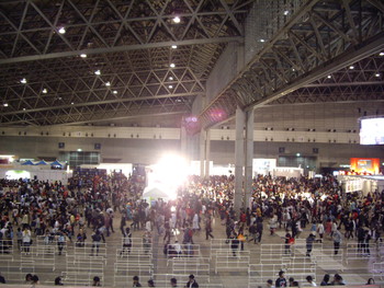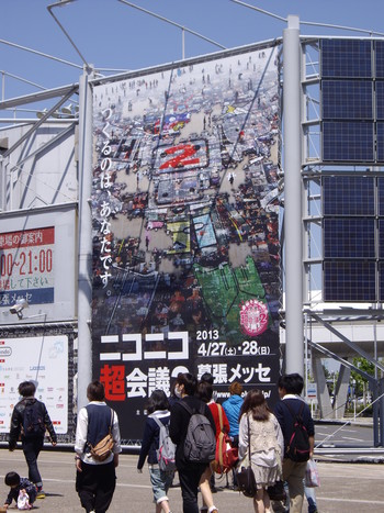 by Andrew Osmond & Melissa Francis,The weekend of April 28-29 (which was the beginning of Golden Week, a holiday period in Japan) saw Niconico Chokaigi 2, the second event held by the video-streaming website Niconico. It took place at Makuhari Messe, a giant hanger-like venue in Chiba which overlooks Tokyo Port - it's about 40 minutes’ train ride from Tokyo station, on the same line as Disneyland. Makuhari Messe had also hosted the Anime Contents Expo just a month before, although the Niconico event sprawled twice as far through the venue. It was reported last year that the Niconico site had 27 million users, and that nearly 100,000 people attended the first Niconico event in 2012, though visitors who went to both days of the weekend were counted twice.