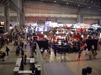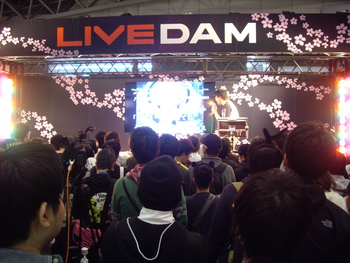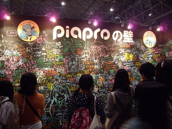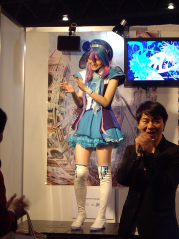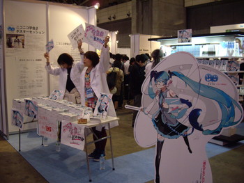 Niconico is not specifically an anime event, although there were numerous anime and game-related displays dotted around the floor. One might be forgiven, though, for thinking that it was a Hatsune Miku event, as the starlet and her fellow Vocaloids could be found here, there, and everywhere. Of course, Miku owes much of her stardom to the fan-created, fan-supported videos on Niconico. (“Vocaloid” is a specific video category on the site, and at one stand fans were busily wielding software to create new songs.) Still, it's striking that the blue-haired avatar still has such a high profile, after what's already been a long career in pop-culture terms. Can no new icon topple Miku from her throne?