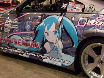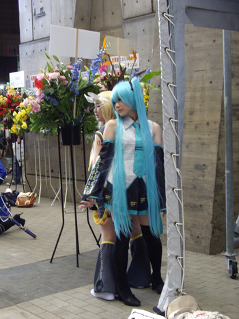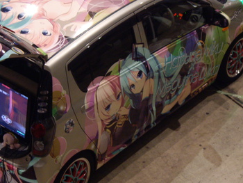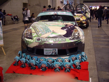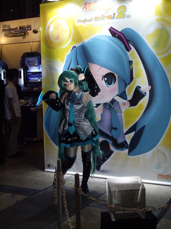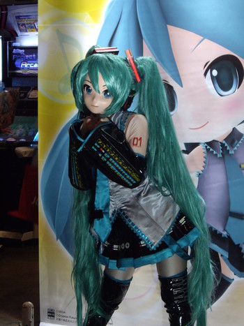 Elsewhere, Miku was hard to miss, incarnated as lifesize models, cosplayers, and on promotional cars…