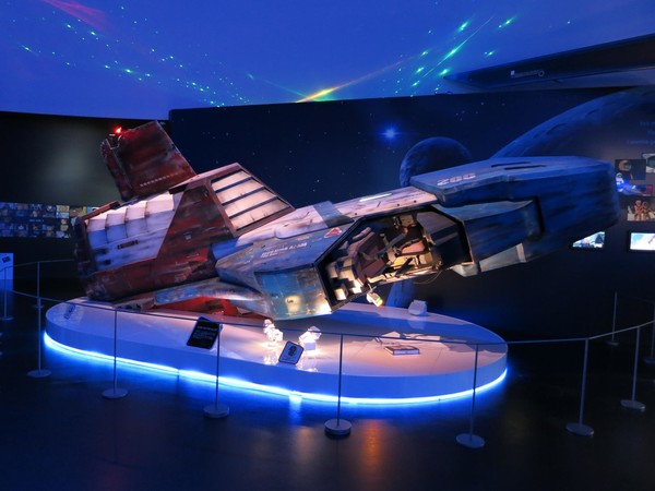First you enter this big dome where no photos are allowed and watch a 360-degree movie of CG Gundams (some with really questionable designs) smacking against eachother in space, and then there are a bunch of clips reminding you of all the Gundam series you could be purchasing right now. They're pushing Gundam Seed HD really hard, so a bunch of time was spent on that, and obviously Gundam Build Fighters. It's about 10 minutes long and it hurts your neck to watch, just like all Circlevision-style movies. No, you don't get to sit down.