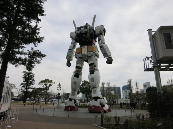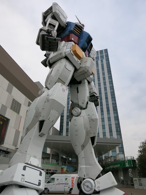 HOPE: You can see the truck there for scale. There are dozens of stickers all over the Gundam's body saying not to climb it, so you know at least one person's already pursued their dream of getting into that cockpit.