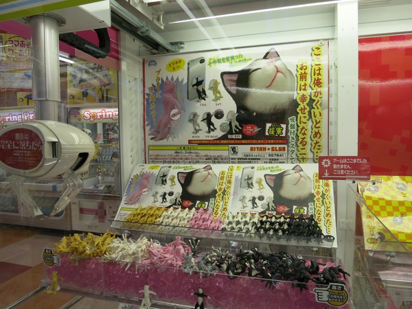 A lot of the really fun silly stuff seems to be exclusive to the crane games, like these celphone stands that look like kitties. I wanted one, but the machine was broken. Next time, kitties. Next time.