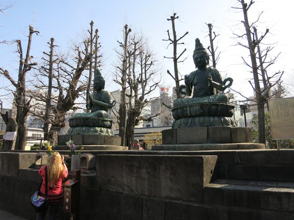 HOPE: The human visitors are much more respectful of the Buddha statues than the pigeon visitors, who like to strut along the wall and wait for offerings of melon bread.