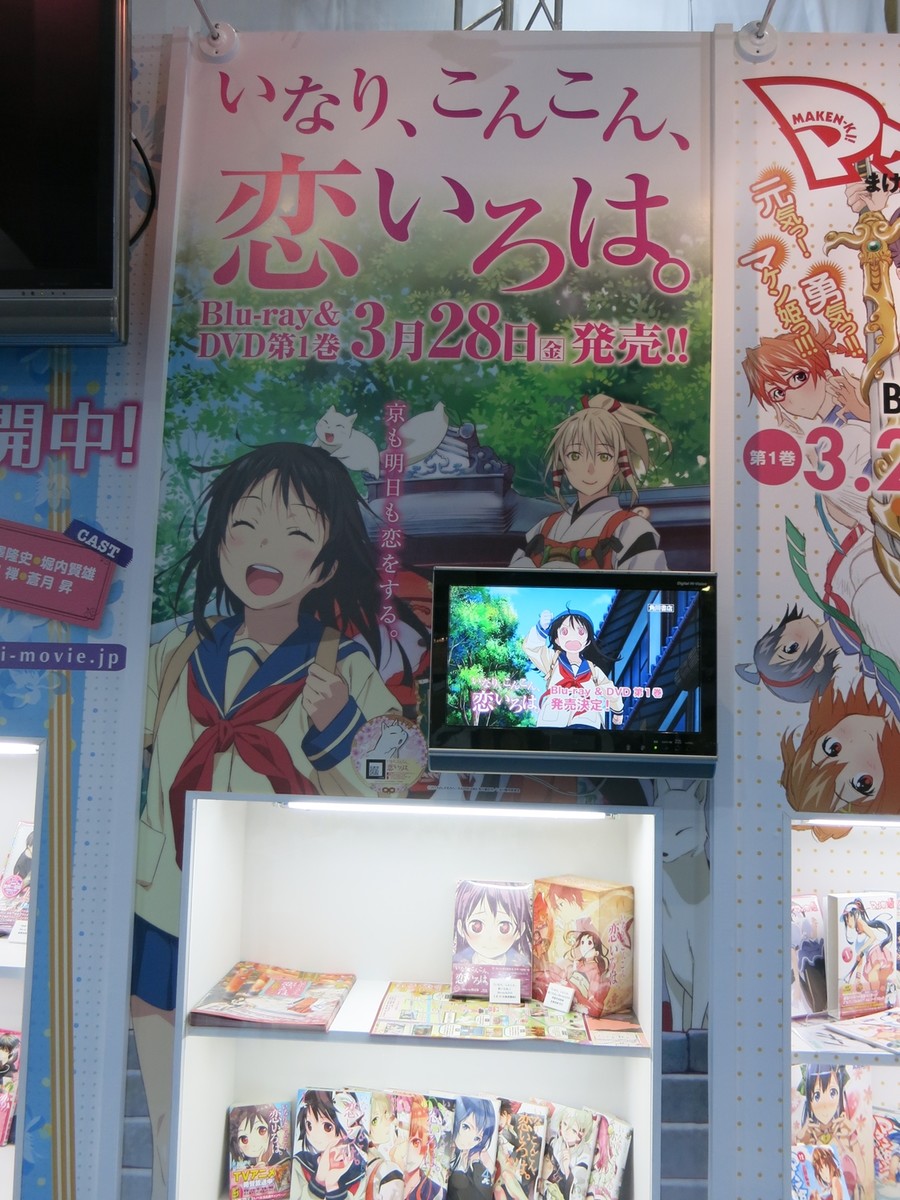 The result was a spacious event with plenty of room for the mob of fans, although the industry itself hasn't grown quite enough to fill out this space. I've been to TAF twice before and the booths here were decidedly scaled-down; Aniplex and Bandai predictably wowed with opulent displays, but previous big spenders like Pierrot had downsized. The fans were out in force for Love Live! swag, obviously the biggest show on display – when early bird ticket holders were let in, we saw people sprinting toward the Bandai booth, grabbing handfuls of free clear files and trading cards. We managed to gain press access to the event before the huge crowds outside were let in, so some of our pictures are still in setup mode, but we did our best to capture as much of the booths and excitement as possible.