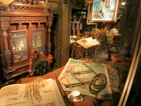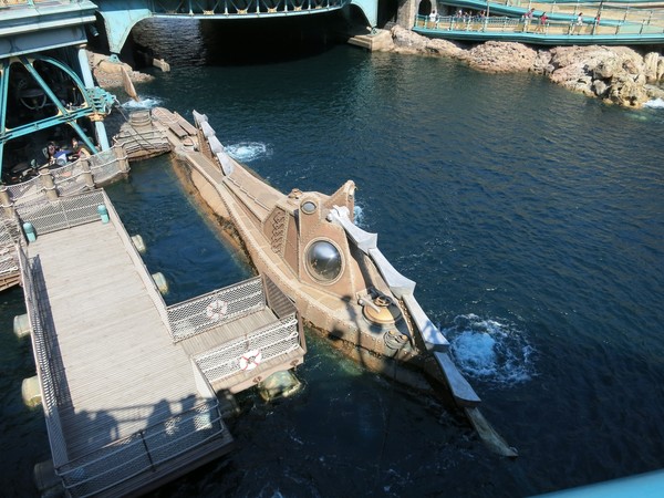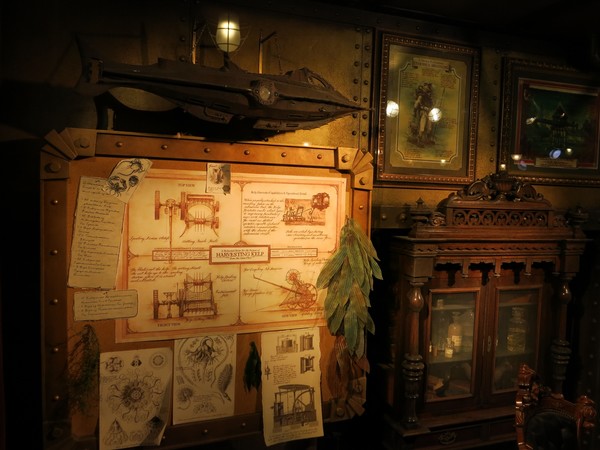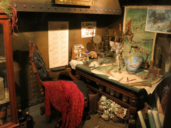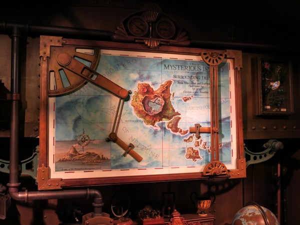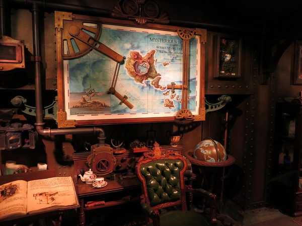 This is the area of the park called Mysterious Island, and it's goddamn incredible. There's the Nautilus, parked outside a seating area for a quick service restaurant (meaning you grab a tray and some food and also there's the Nautilus).