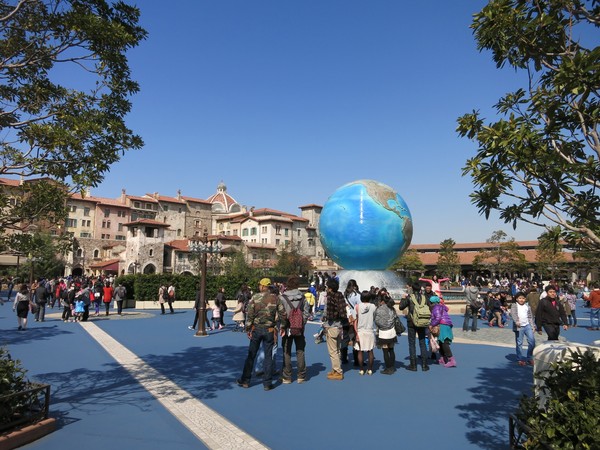 In lieu of a "Partners" statue (the famous statue of Walt Disney holding hands with Mickey Mouse, pointing toward a highly profitable future) DisneySea has this massive globe inside a splashing fountain, set inside this Mediterranean-themed harbor village. I spend a lot of time at Disneyland and I can tell you right away, just at this opening shot, that DisneySea is the most opulent and elaborately-themed Disney park in the world. The attention to detail in the theming is mindblowing, if you're in to that kind of thing, which I very much am.