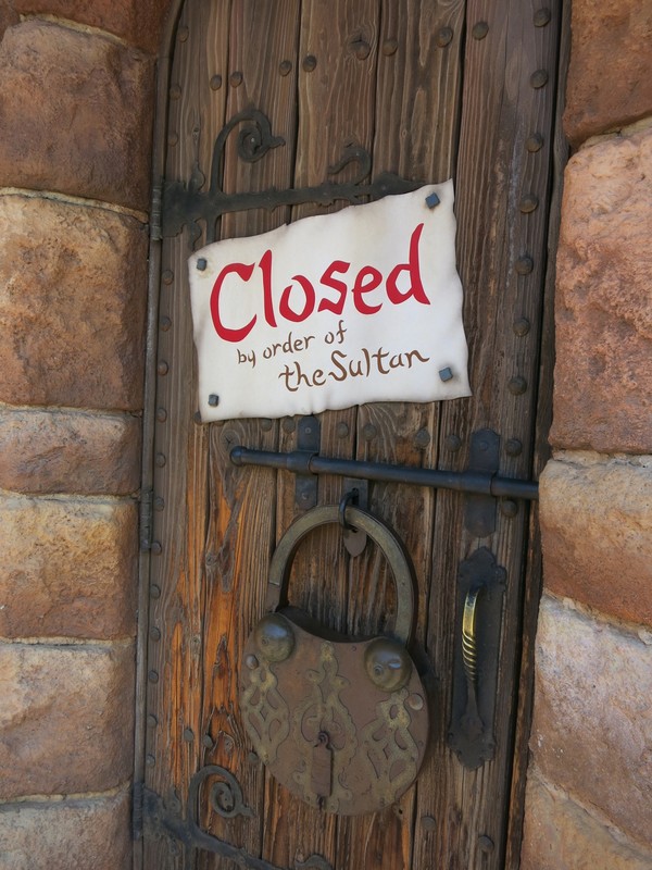 HOPE: Yay, Aladdin-land! Aladdin is one of my favorite Disney films overall, but it definitely has my favorite visual aesthetic (set and character design, color palette,) of the traditionally animated features, along with Sleeping Beauty. In other words, it's the Disney world I'd most like to step into, and it's kinda woefully under-represented in Disneyland, so this gigantic themed area was a real treat.