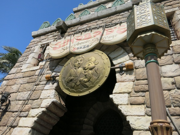 One thing the Oriental Land Company has managed to hang on to: sponsored rides with custom signage. Disney parks in America used to have these everywhere; Star Tours used to be sponsored by Duracell, for example, so once you were walking down the exit ramp you'd see signs that said stuff like "Power Your Galactic Adventures with Duracell" or whatever. All that's mostly gone now, but they've managed to hang on to those sponsorships here, so the signs still exist. It's a little nostalgic for anyone who visited Disneyland or Disney World in the 80s and 90s.