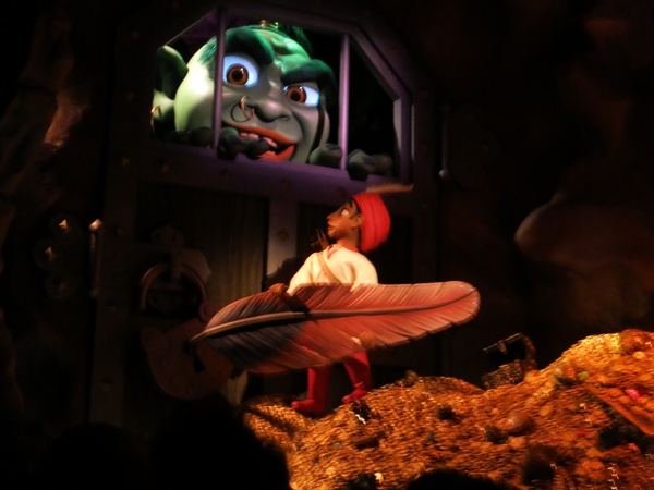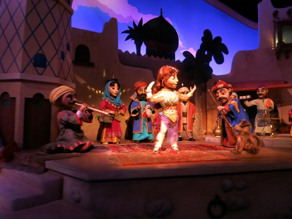 HOPE: So, It's a Small World is actually one of my favorite Disneyland rides. I know it gets a lot of guff for being eternally whimsical and looping that damn song over and over and over, but for some reason I don't get tired of either the whimsy or the song when I'm on it. I wouldn't listen to the song of my own volition or anything, but I love being on the ride. My point is, the Sindbad ride does the exact same thing, with silly animatronics and an eternally looping song, and I loved it. Mostly because those animatronics are incredibly well-designed, with super fluid motion and a ton of neat effects. Also, adorable tiger cub.