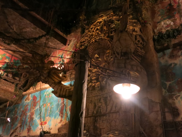 Overall I was impressed with this version of the ride - the dart room (meaning the bit where the jeep goes through a corridor with spring-trap "darts" firing at you) is much more elaborate, and the big animatronic snake has much more lifelike movement. The antichamber leading to the Crystal Skull room is neat but it doesn't change like the Temple of Mara in the original park, and I think I prefer the pacing on the original and some of the wonky charm, but they're both great rides.