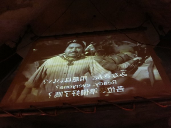 This is "Paco", the Japanese replacement for Sallah, I guess. The pre-ride safety spiel in Disneyland features John Rhys-Davies reprising his role and telling you to put on your seatbelt. Here they get "Paco". He says "adios!" when he signs off, so you know he's hispanic!