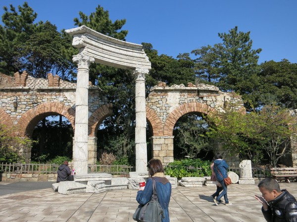 This is just a sitting area. Again: this is just a bench. In any other park this would actually be just benches instead of carefully themed ruins designed to complement the surroundings.