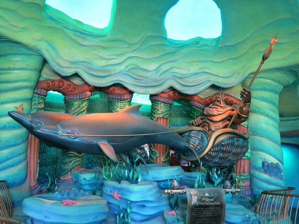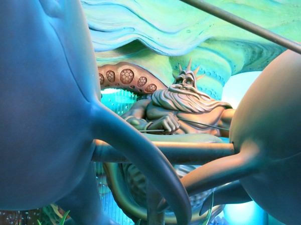 Back to Mermaid Lagoon. Here's a giant bronze statue of King Triton. All of this is inside the big palace you saw earlier.