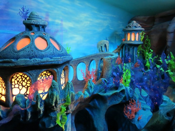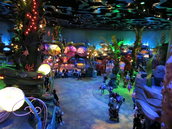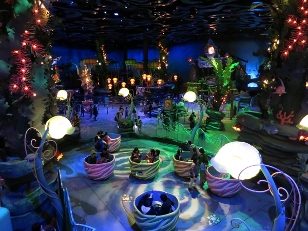 This theater houses the "Under the Sea" show, which is billed as a live adaptation of The Little Mermaid but is decidedly not that. There wasn't any photography allowed inside, but the show was theater in the round, with a woman playing Ariel on a flying stage harness and Cirque du Soleil-style performers for Sebastian and Flounder. Ursula was one of the coolest stage puppets I've seen in a very long time - a giant segmented metal head with disembodied hands that overwhelmed the show. The whole thing had to be wrapped in 15 minutes though, and the solution they came up with to keep it short was for Ariel to just not sign the contract. Sebastian successfully talks her out of it, the end. I laughed out loud inappropriately several times. There's your solution: just remove the conflict! Here's a video:
